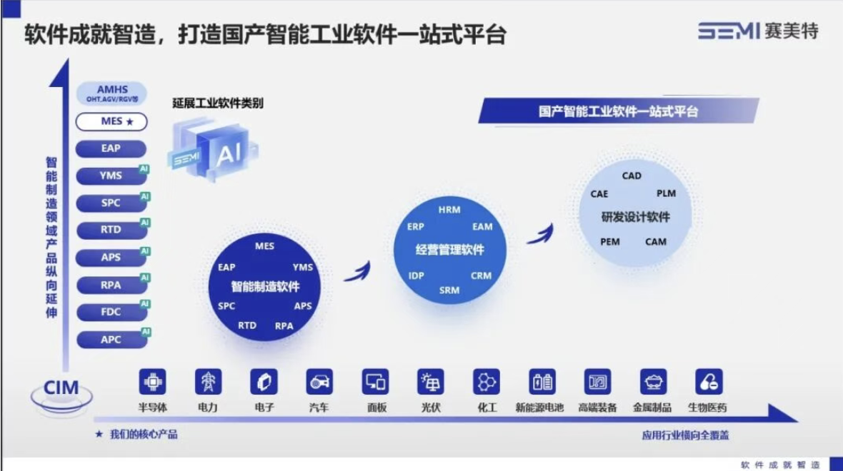 赛美特以前瞻性的战略视野,将人工智能深度融入智能制造全链路,构建“AI + 制造”的全栈式软硬一体化解决方案,致力于打造国产智能工业软件一站式平台。