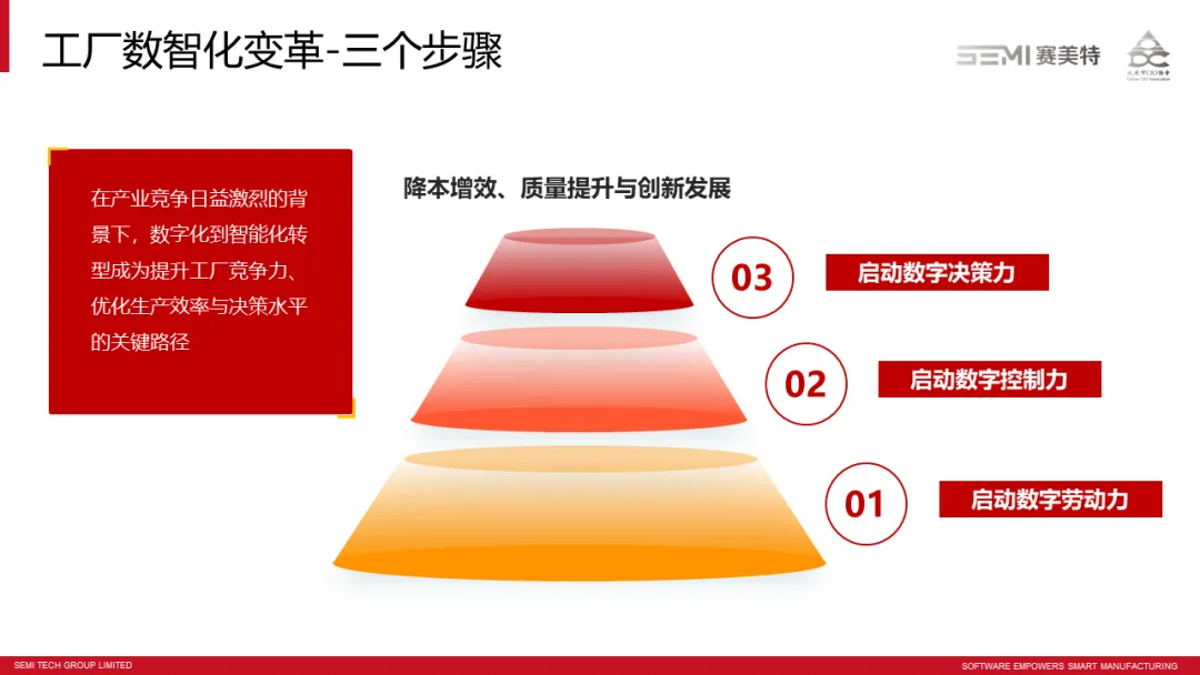 随着人工智能应用的爆发,企业竞争正从“制造产品竞争”转向“智慧运营竞争”。作为国产智能工业软件领军企业,赛美特从制造管理延伸至企业经营管理,借助AI能力,打造数据驱动管理的智能工厂系统体系。未来,赛美特将继续携手行业协会、生态伙伴与客户,共建智能管理新生态,助力企业实现“数据可见、决策可知、运营可控”的智能化升级。