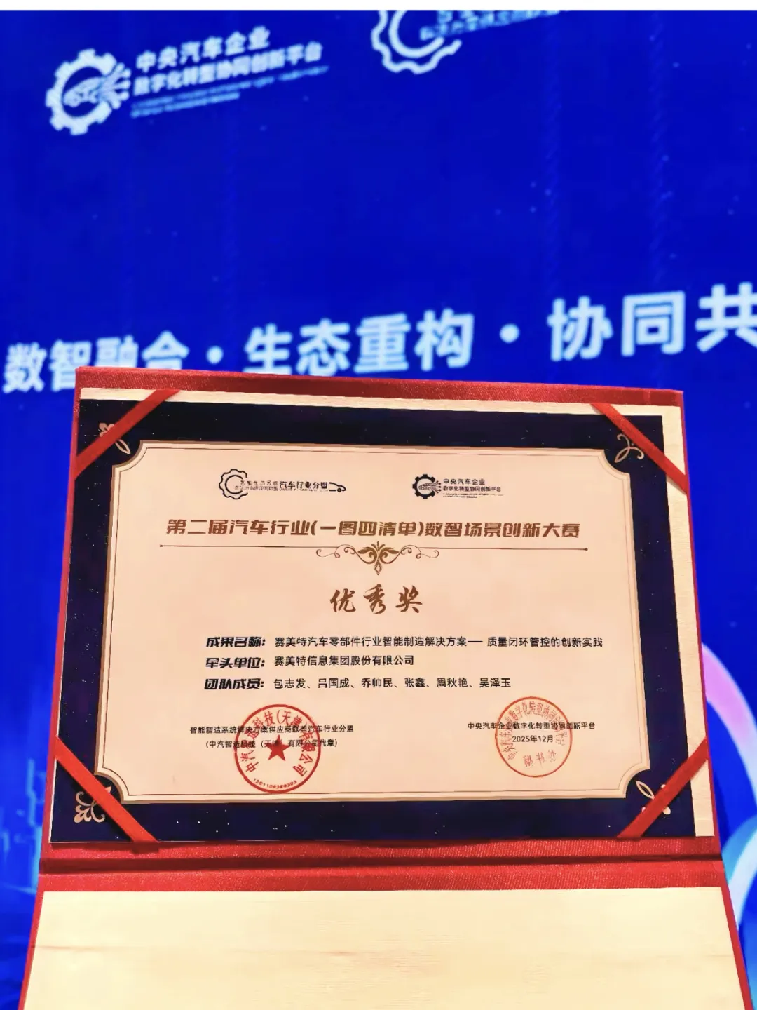 凭借在汽车零部件质量管控场景的深度实践与领先技术能力,赛美特的解决方案从众多参赛项目中脱颖而出,荣获优秀奖。