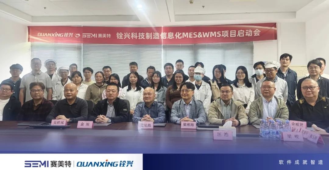 3月17日,赛美特与深圳市铨兴科技有限公司(以下简称”铨兴科技“)成功举行MES系统项目启动会。双方高层及项目团队共同出席,标志着铨兴科技存储制造基地智能化升级项目全面启动。